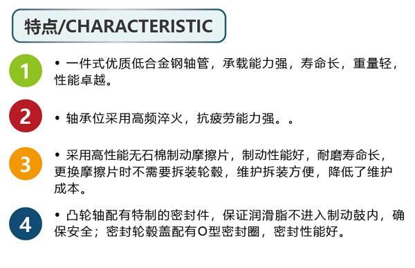 凸轮轴配有特制的密封件,保证润滑脂不进入制 动鼓内,确保安全;
