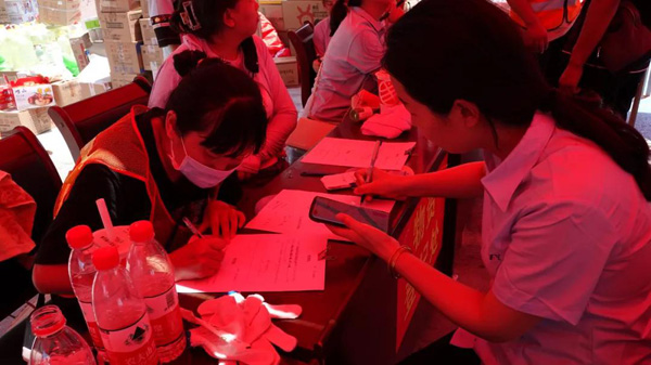 到新乡后,正阳集团支援小组一行人获新乡市慈善总会工作人员热情接待,全程精准对接。工作人员对捐赠物资逐一登记,并对正阳集团表示感谢。相关人员对我们说明了新乡的受灾情况,同时表示会尽快把物资发放到灾民手中。